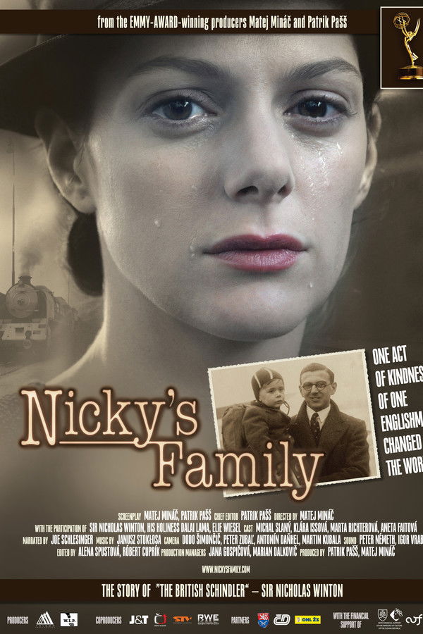 Nicky's Family is a gripping documentary from the International Emmy Award winning producers Patrik Pass and Matej Minac about a rescue operation of the “British Schindler” - Sir Nicholas Winton who will celebrate this year 103rd birthday. His story has no parallel in modern history. Dramatic reenactments, some of the archive footage never seen before, rescued "children" together with Mr. Winton himself recount this unique story which even after 70 years continues to inspire people, especially children, to make this world a better place. World personalities His Holiness Dalai Lama and Nobel Prize winner Elie Wiesel also took part. ( - from the film's press kit)