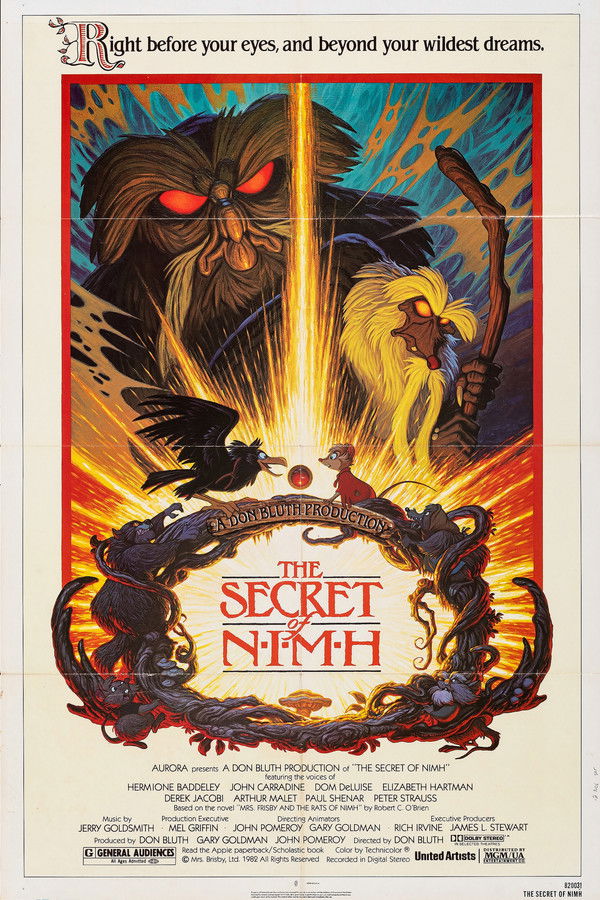 A widowed field mouse must move her family -- including an ailing son -- to escape a farmer's plow. Aided by a crow and a pack of superintelligent, escaped lab rats, the brave mother struggles to transplant her home to firmer ground.