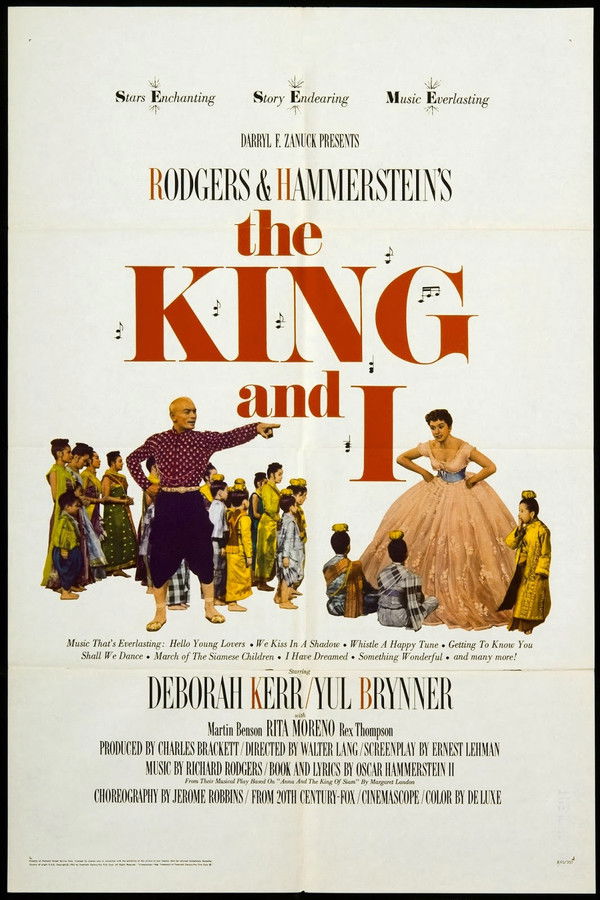 Widowed Welsh mother Anna Leonowens becomes a governess and English tutor to the wives and many children of the stubborn King Mongkut of Siam. Anna and the King have a clash of personalities as she works to teach the royal family about the English language, customs and etiquette, and rushes to prepare a party for a group of European diplomats who must change their opinions about the King.
