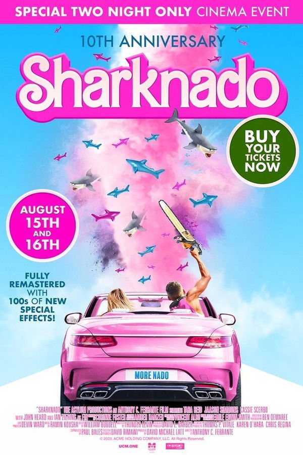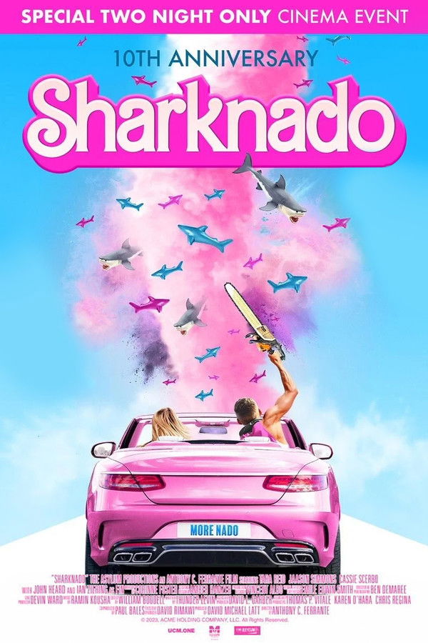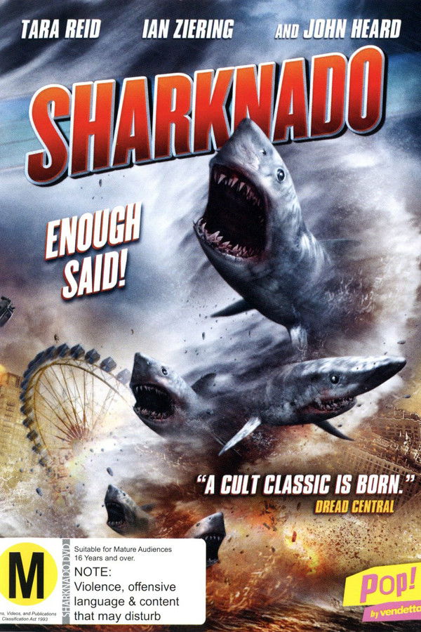 A freak hurricane hits Los Angeles, causing man-eating sharks to be scooped up in tornadoes and flooding the city with shark-infested seawater. Surfer and bar-owner Fin sets out with his friends Baz and Nova to rescue his estranged wife April and teenage daughter Claudia.