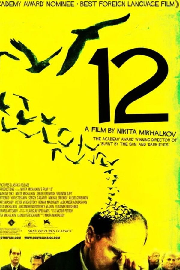 A loose remake of β12 Angry Menβ, β12β is set in contemporary Moscow where 12 very different men must unanimously decide the fate of a young Chechen accused of murdering his step-father, a Russian army officer. Consigned to a makeshift jury room in a school gymnasium, one by one each man takes center stage to confront, connect, and confess while the accused awaits a verdict and revisits his heartbreaking journey through war in flashbacks.