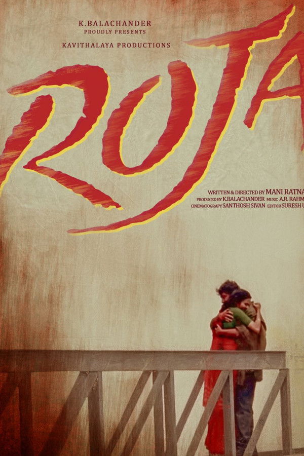 Roja, a simple girl from a village in Tamil Nadu, makes desperate efforts to find her husband, Rishi, after he is kidnapped by militants during a secret undercover mission in Kashmir.
