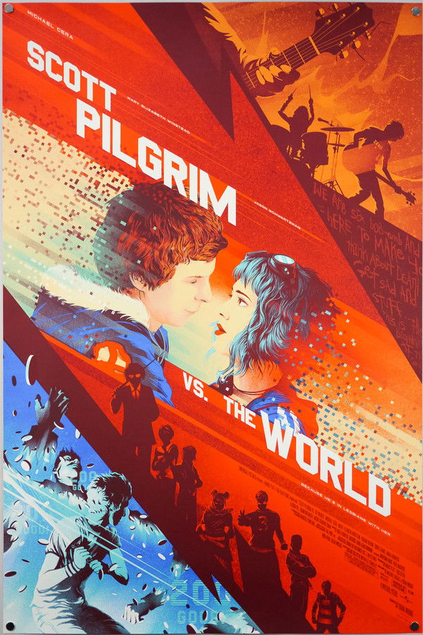 As bass guitarist for a garage-rock band, Scott Pilgrim has never had trouble getting a girlfriend; usually, the problem is getting rid of them. But when Ramona Flowers skates into his heart, he finds she has the most troublesome baggage of all: an army of ex-boyfriends who will stop at nothing to eliminate him from her list of suitors.