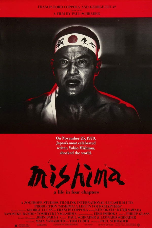 A fictional account of the life of Japanese author Yukio Mishima, combining dramatizations of three of his novels and a depiction of the events of November 25th, 1970.