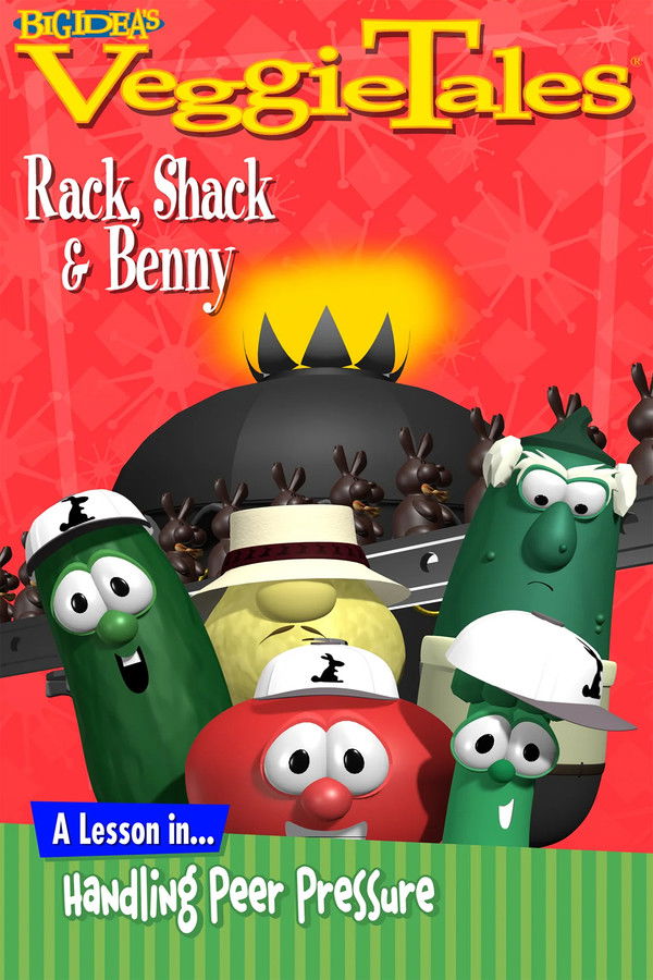 There's trouble brewing at the Nezzer Chocolate Factory! To celebrate the sale of two million chocolate bunnies, company president Nebby K. Nezzer announces that his workers may eat as many bunnies as they like! This sounds great, until three boys named Rack, Shack and Benny remember that their parents taught them not to eat too much candy. By paralleling the Biblical story of Sadrach, Meschach and Abednego and the fiery furnace, "Rack, Shack, & Benny" teaches kids how to resist peer pressure and stand up for what they believe in. Kids of all ages will love the songs, humor and dazzling 3D computer animation of VeggieTales!