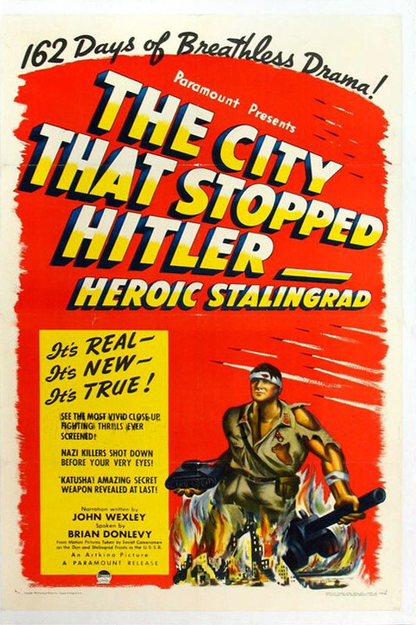 A Soviet documentary chronicling the Battle of Stalingrad, one of the turning points of World War II. Filmed on the front lines, it depicts the brutal devastation of the city, the resilience of its defenders, and the eventual Soviet counteroffensive that encircled and defeated the German 6th Army. Released internationally—with the U.S. version retitled The City That Stopped Hitler: Heroic Stalingrad—the film served both as a record of the Red Army’s victory and as a powerful work of wartime propaganda.