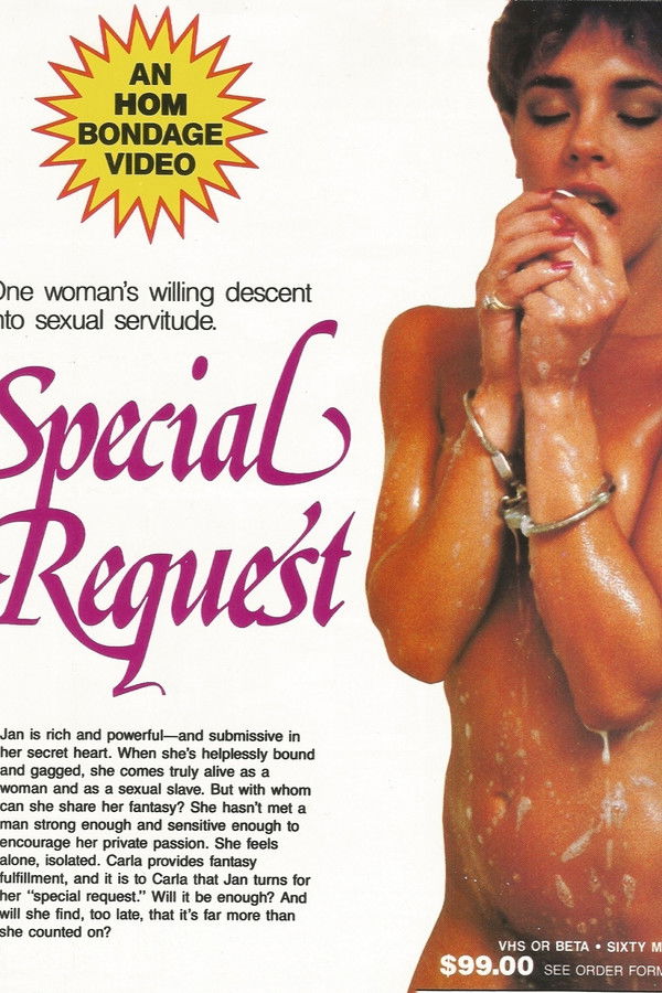 After having a close call performing self-bondage, Jan Collins, a wealthy divorced woman, goes to a discreet wish fulfillment service. After agreeing to their terms of service, she's blindfolded, taken to a warehouse, and chained up to become the submissive slave of a blonde dominatrix. Her new mistress might have more evil plans in her mind for her though.