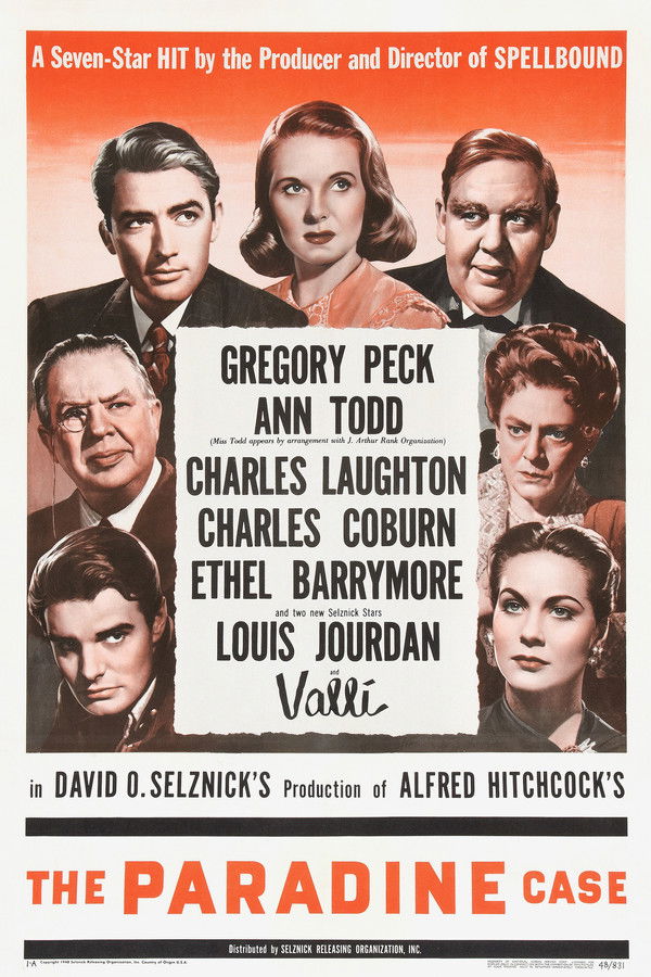 In London, barrister Anthony Keane takes the case of Maddalena Paradine, a beautiful woman accused of poisoning her blind husband. Though happily married, Keane becomes infatuated with his enigmatic client and convinced of her innocence. His obsession clouds his judgment as he builds a defense implicating her servant, André Latour—an act that leads to devastating consequences both in court and at home.