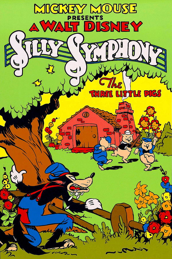 The two pigs building houses of hay and sticks scoff at their brother, building the brick house. But when the wolf comes around and blows their houses down (after trickery like dressing as a foundling sheep fails), they run to their brother's house. And throughout, they sing the classic song, "Who's Afraid of the Big Bad Wolf?".