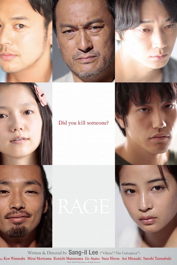 A man brutally murders a married couple and leaves the word “ikari” (“rage”) written with their blood. The killer undergoes plastic surgery and flees. At three different locations in Japan, a male stranger appears. People suspect that the stranger might be the murderer.