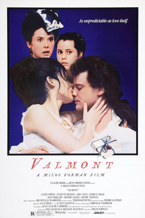 Set in Baroque France, a scheming widow and her lover make a bet regarding the corruption of a recently married woman. The lover, Valmont, bets that he can seduce her, even though she is an honorable woman. If he wins, he can have his lover to do as he will. However, in the process of seducing the married woman, Valmont falls in love.