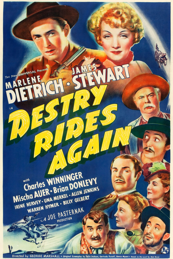 Tom Destry, son of a legendary frontier peacekeeper, doesn’t believe in gunplay. Thus he becomes the object of widespread ridicule when he rides into the wide-open town of Bottleneck, the personal fiefdom of the crooked Kent.