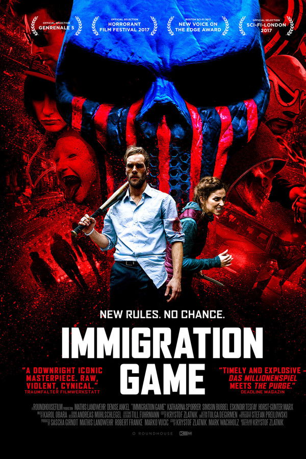 Germany refuses to receive any more refugees. The only way to obtain citizenship is to survive the popular TV show 'Immigration Game'. Whoever participates as a 'Runner' will be abandoned on the outskirts of Berlin and must make their way to the television tower at Alexanderplatz. For a prize money every German citizen may chase and eventually kill the refugees entirely unpunished.