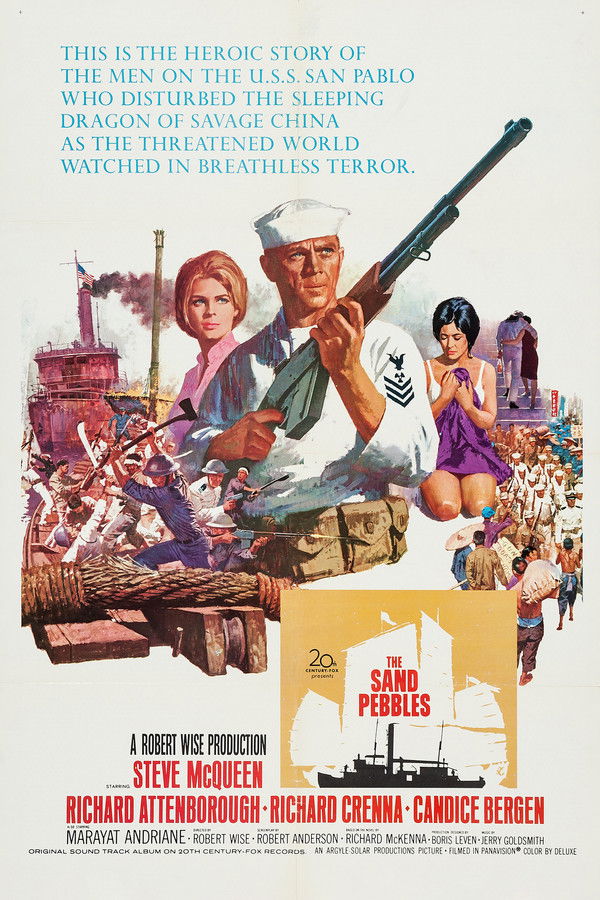 Engineer Jake Holman arrives aboard the gunboat USS San Pablo, assigned to patrol a tributary of the Yangtze in the middle of exploited and revolution-torn 1926 China. His iconoclasm and cynical nature soon clash with the 'rice-bowl' system which runs the ship and the uneasy symbiosis between Chinese and foreigner on the river. Hostility towards the gunboat's presence reaches a climax when the boat must crash through a river-boom and rescue missionaries upriver at China Light Mission.