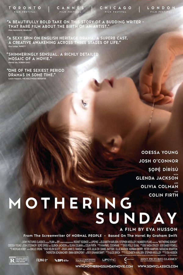 On a warm spring day in 1924, house maid and foundling Jane Fairchild finds herself alone on Mother's Day. Her employers, Mr. and Mrs. Niven, are out and she has the rare chance to spend quality time with her secret lover. Paul is the boy from the manor house nearby, Jane's long-term love despite the fact that he's engaged to be married to another woman, a childhood friend and daughter of his parents' friends. But events that neither can foresee will change the course of Jane's life forever.