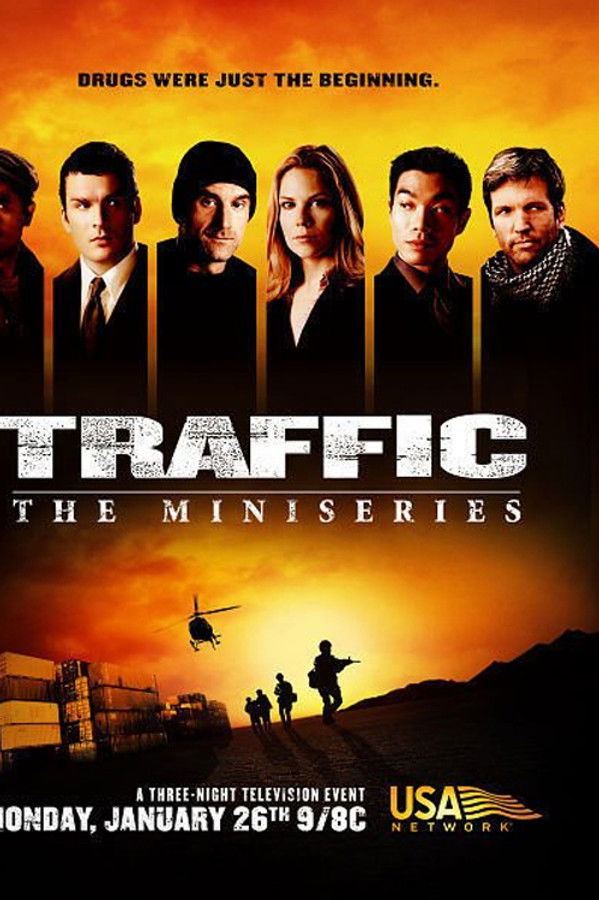 Traffic is a three-part miniseries broadcast on the USA Network from January 26–28, 2004. Produced by Graham King, the series is a continuation of Steven Soderbergh's Academy Award-winning 2000 crime film of the same name, itself adapted from the 1989 Channel 4 six-episode serial Traffik. A look into the world of trafficking, where drugs, weapons, and even people are traded all over the world. Here, the lives of three Seattle-based men become intertwined — until they're all in over their heads.