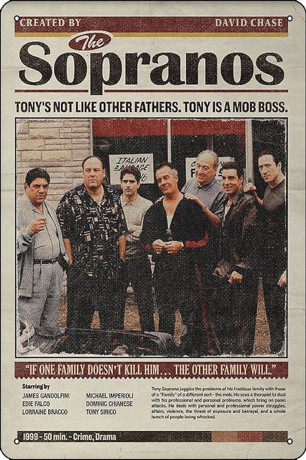 The story of New Jersey-based Italian-American mobster Tony Soprano and the difficulties he faces as he tries to balance the conflicting requirements of his home life and the criminal organization he heads. Those difficulties are often highlighted through his ongoing professional relationship with psychiatrist Jennifer Melfi. The show features Tony's family members and Mafia associates in prominent roles and story arcs, most notably his wife Carmela and his cousin and protégé Christopher Moltisanti.