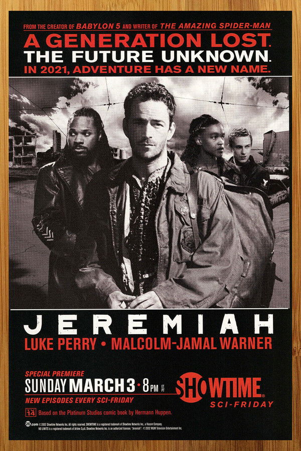 Jeremiah is an American television series starring Luke Perry and Malcolm-Jamal Warner that ran on the Showtime network from 2002 to 2004. The series takes place in a post-apocalyptic future where most of the adult population has been wiped out by a deadly virus.