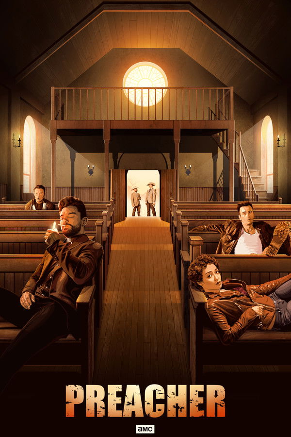 Fulfilling a promise to his deceased father, one-time outlaw Jesse Custer returns home to West Texas to take over his dad's church. Jesse's mission, however, becomes twisted when his body is overcome by a cryptic force that unleashes within him a highly unconventional power. Together with hell-raising ex-girlfriend Tulip and Irish vagabond Cassidy, the preacher-in-training embarks on a journey to find God in a world inhabited by holy, hellish, and everything-in-between characters.